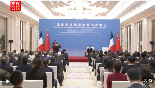 12月4日中午,國家主席習近平在北京同法國總統(tǒng)馬克龍共同出席中法企業(yè)家委員會第七次會議閉幕式并致辭。