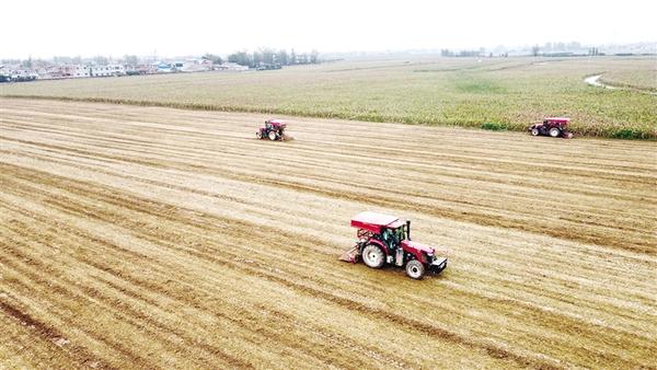 ?10月14日,市城鄉(xiāng)一體化示范區(qū)許灣街道孔莊村村民在田間耕作。連日陰雨暫歇,農(nóng)戶們利用晴好天氣,與時間賽跑,抓緊秋播。