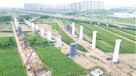 9月21日上午,在平漯周高鐵接入高鐵周口東站的施工現(xiàn)場,中鐵十局的工人正緊張施工。據(jù)了解,該項(xiàng)目將通過新建三條軌道接入高鐵周口東站,屆時(shí),高鐵周口東站將升級成為四條軌道并行的高鐵樞紐站。