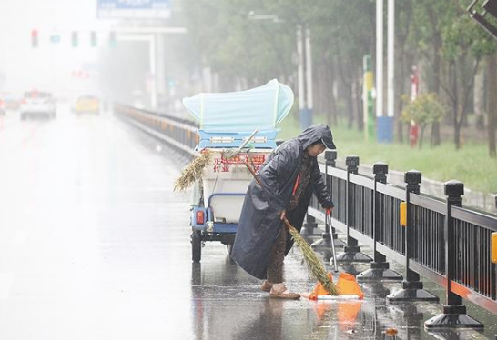 9月22日清晨,連綿的秋雨持續(xù)不斷,在周口市淮陽區(qū)弦歌西路,一位環(huán)衛(wèi)工人冒雨清理道路上的垃圾,保障市民安全順暢通行。